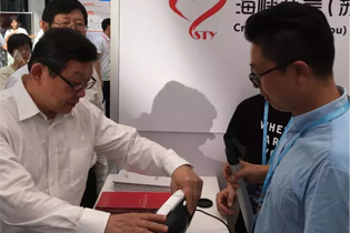 當向陳德銘會長介紹我園內的參展企業——紅星獎得主、蘇州軒昂工業設計有限公司的聯展產品時,陳會長饒有興趣地拿起了產品端詳了起來,聽完企業負責人呂知軒的產品介紹后,陳會長對產品進行了點評并鼓勵企業要多創新,制造更多這樣優質的產品。